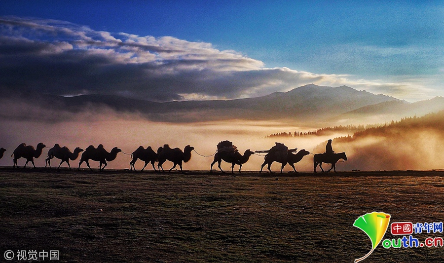 天气逐渐变冷,哈萨克族牧民浩浩荡荡向秋牧场迁徙。