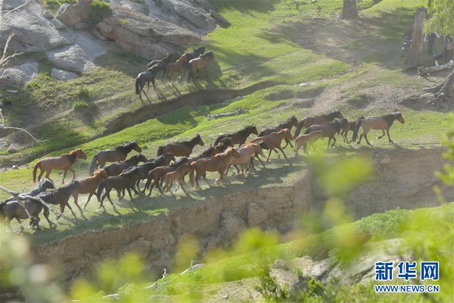 这是牧道上转场的马群(6月6日摄)。新华社记者丁磊摄
