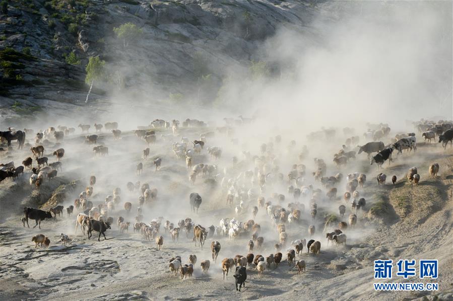 这是牧道上转场的牲畜(6月6日摄)。新华社记者丁磊摄