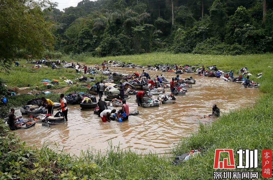 当地时间2019年8月20日,科特迪瓦阿比让,洗衣工们在斑克国家公园的小溪边清洗衣服谋生。