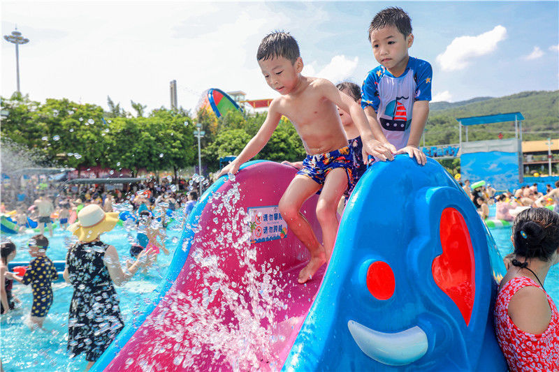 暑气难消,城里人在汽车尾气与空调废气里呆不住了,开车跑往水上乐园与漂流景区借水消暑。27日上午9时,佛山盈香生态园水上乐园就出现了游客高峰,放眼望去,九寨水城与夏威夷水城一片肉色,如同一口超大的铁锅,里面下满了“饺子”与“汤圆”。