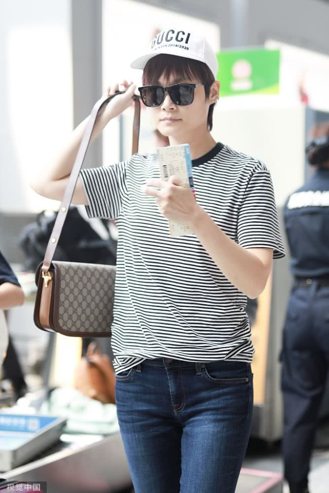 李宇春条纹装扮现身机场,青春活力,人气爆棚