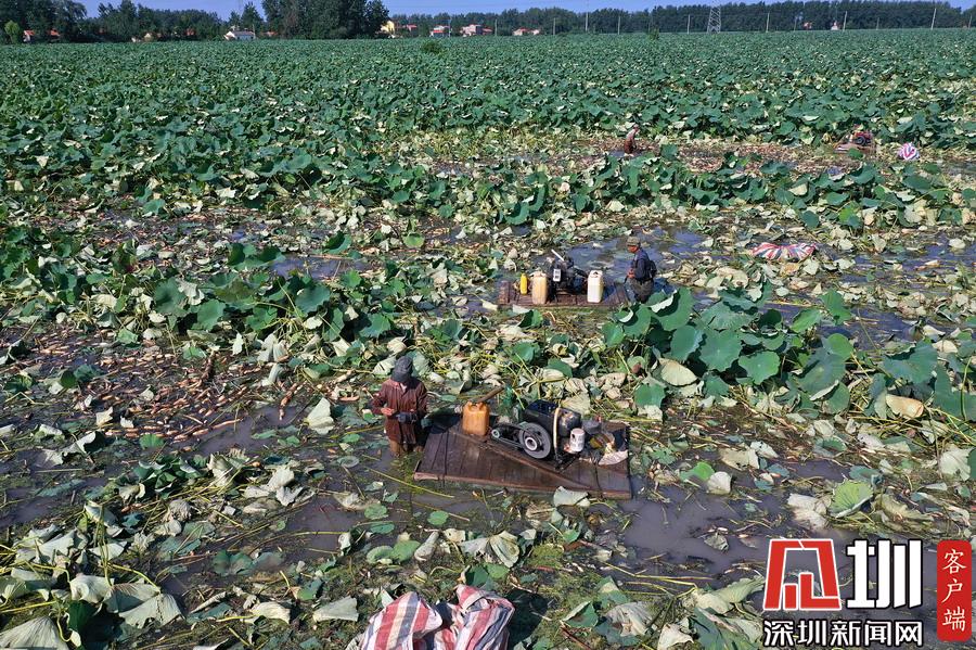藕农们抓紧采藕、清洗、包装、运输,以供应市场。