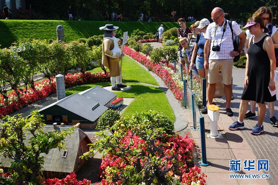 8月25日,在荷兰海牙马德罗丹公园,人们参观微缩建筑。 新华社记者 林立平 摄