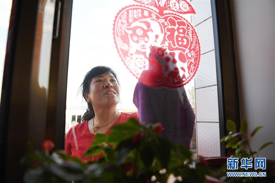 东坪村村民郭金兰在新房擦玻璃(6月13日摄)。 新华社记者 杨晨光 摄