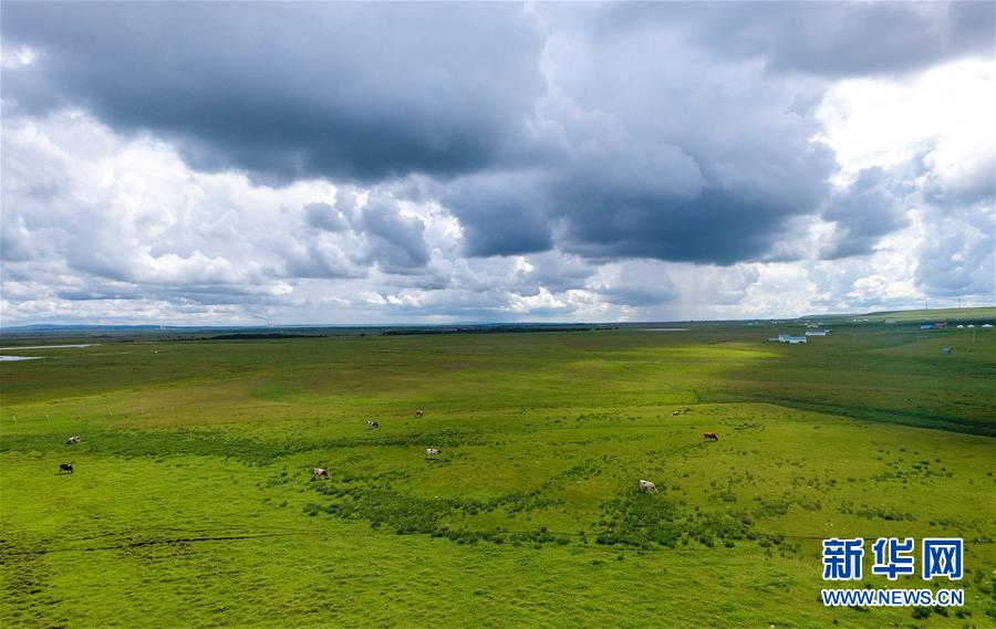 这是8月26日无人机拍摄的呼伦贝尔大草原。 新华社记者 彭源 摄