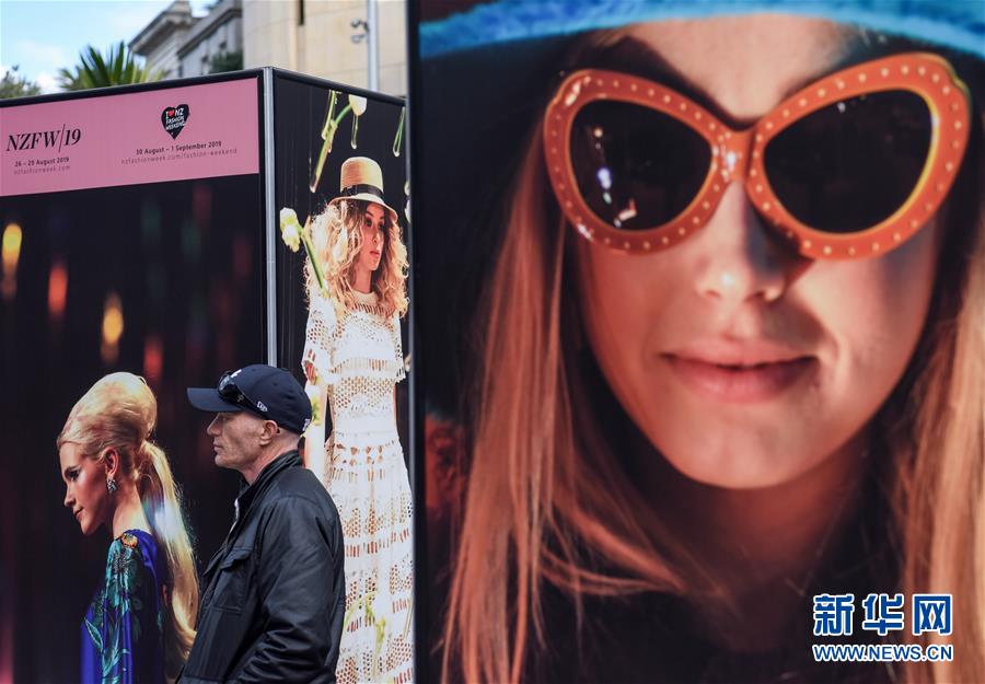 8月29日,在新西兰奥克兰市中心,一名男子观看街头时装秀。新华社记者 郭磊 摄