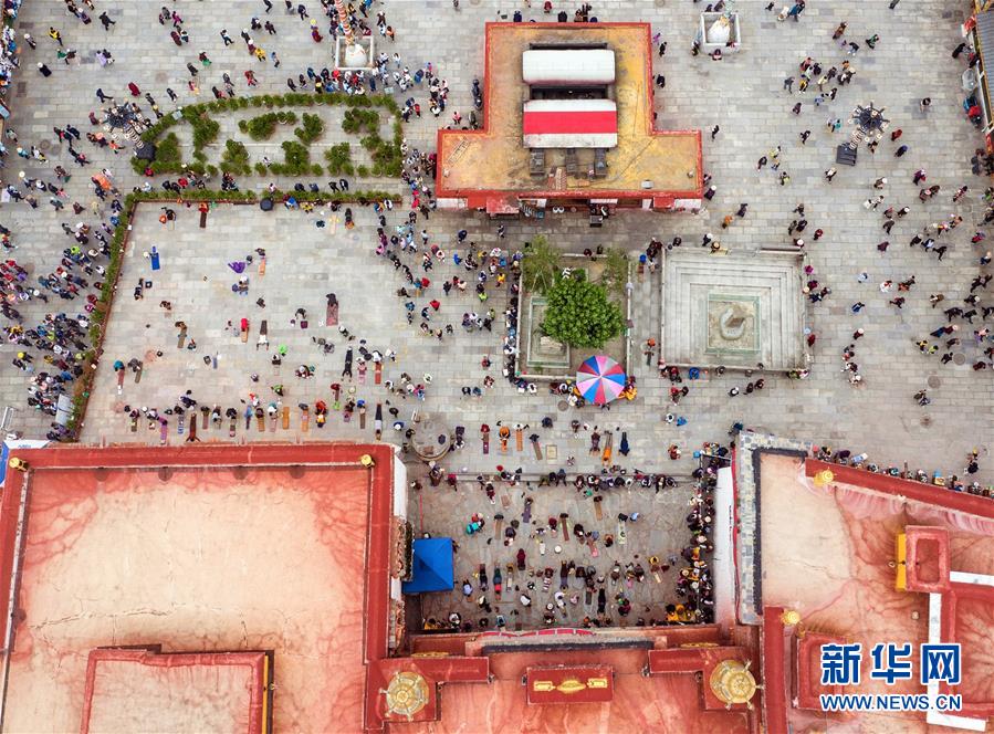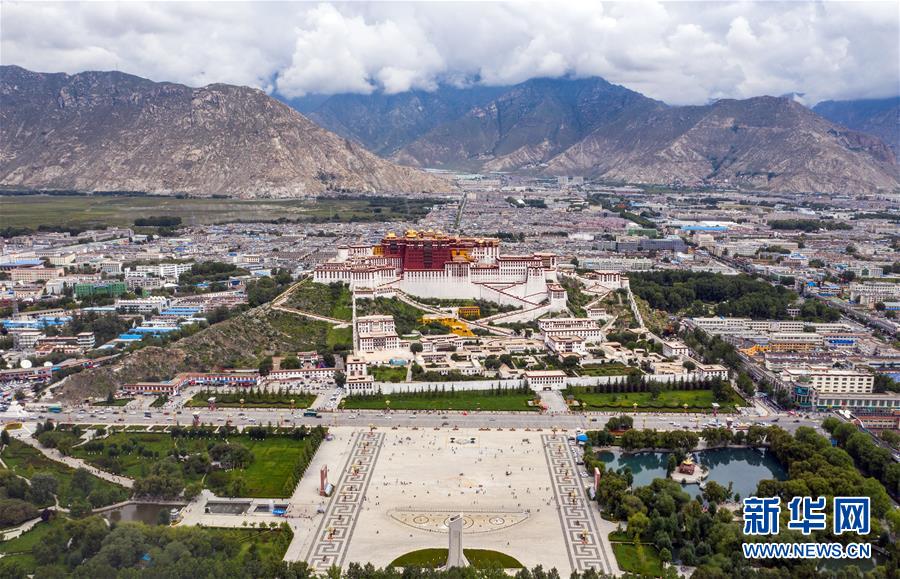 8月10日无人机拍摄的布达拉宫广场一景。新华社记者 王益亮 摄