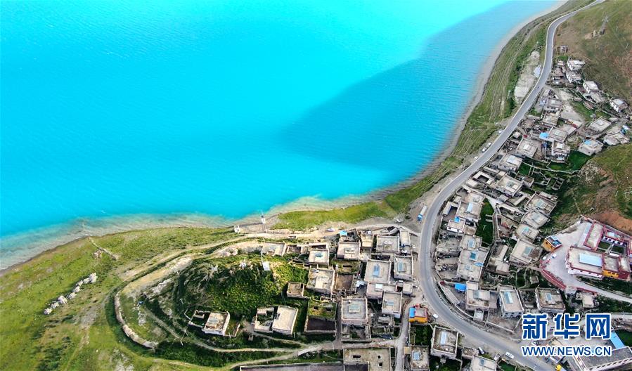 8月31日无人机拍摄的羊卓雍错及周边村落。 新华社记者 晋美多吉 摄