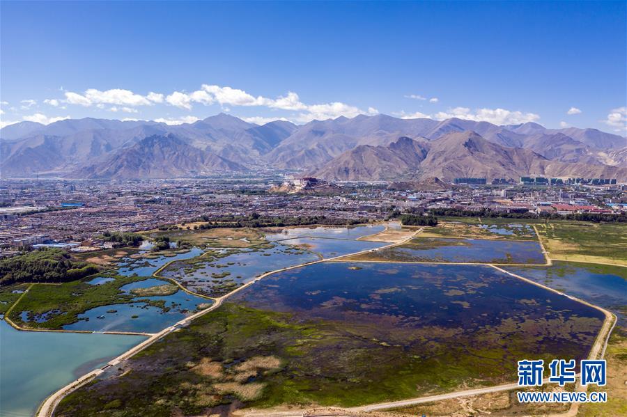 鸟瞰拉萨拉鲁湿地(6月5日无人机拍摄)。新华社记者 普布扎西 摄