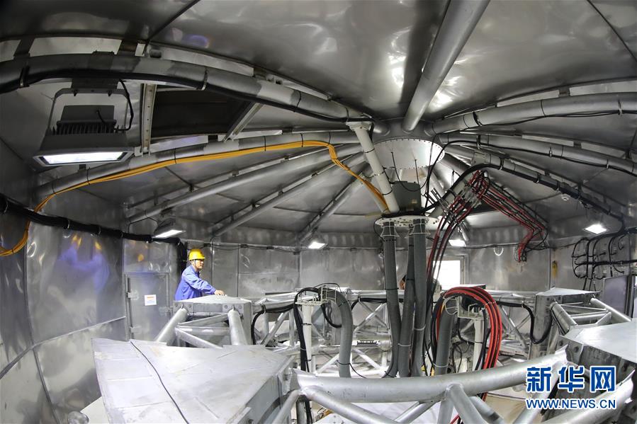 8月28日,工作人员在FAST馈源舱内进行检修。 新华社记者 欧东衢 摄