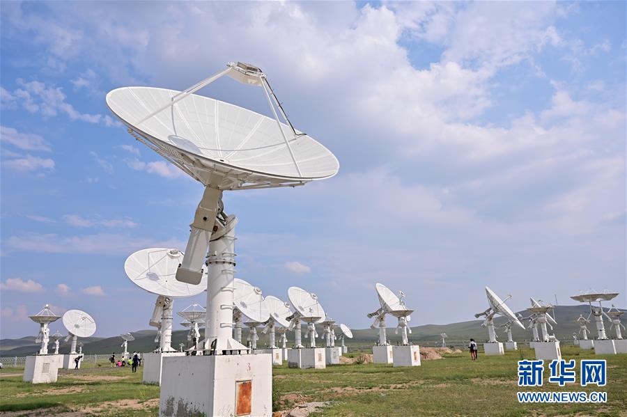 这是明安图观测基地中的抛物面天线(7月27日摄)。 内蒙古自治区正镶白旗明安图镇东南方向的明安图观测基地内,排列着100面白色的抛物面天线。这个庞大的天线阵列便是草原“天眼”——明安图射电频谱日像仪。草原“天眼”持续地接收太阳射电辐射,然后由科研人员进行数据分析、研究,对空间环境监测、太阳活动预报均有重要作用。 新华社记者 刘磊 摄
