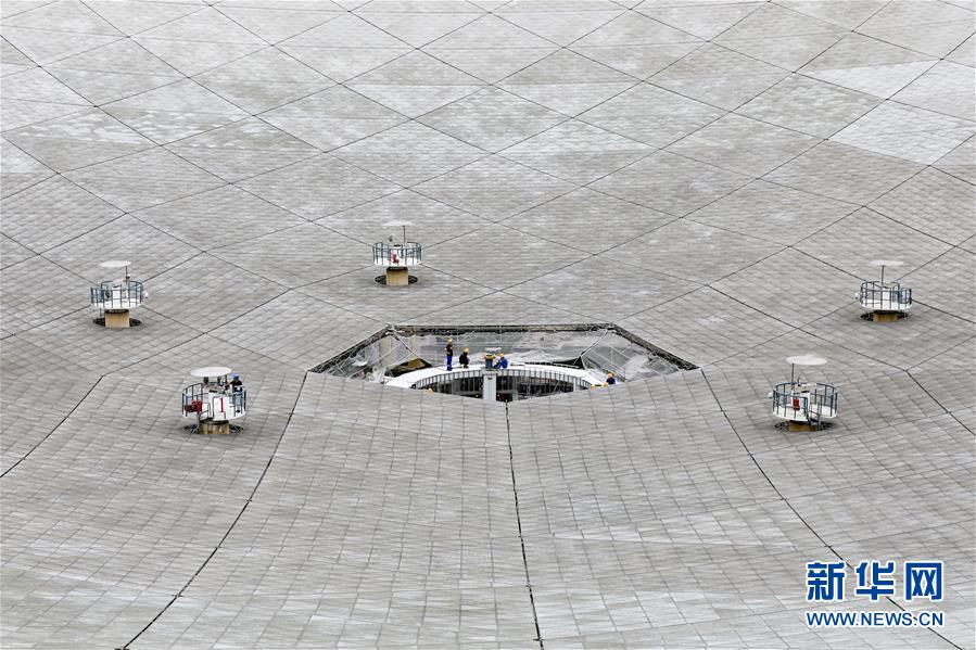 8月28日,工作人员在对FAST进行检修。 近日,工作人员对“中国天眼”进行日常维护和检修,给 “天眼”进行全面“体检”。被誉为“中国天眼”的500米口径球面射电望远镜(FAST)于2016年9月25日落成启用,即将迎来落成三周年。 新华社记者 欧东衢 摄