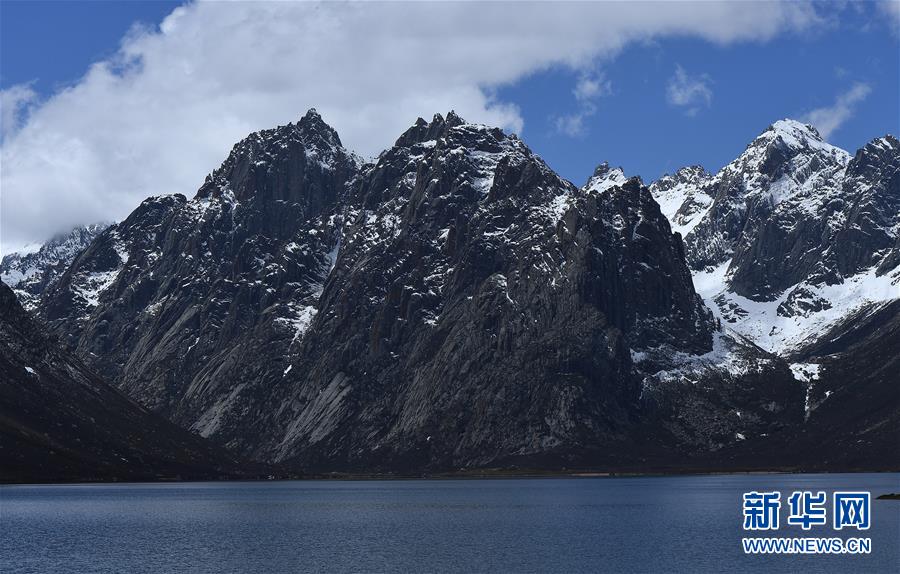 在年保玉则,雪山与湖泊相映成画(5月21日摄)。新华社记者 张宏祥 摄