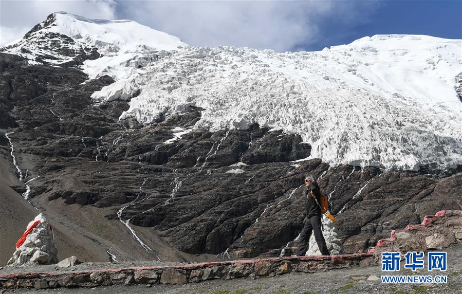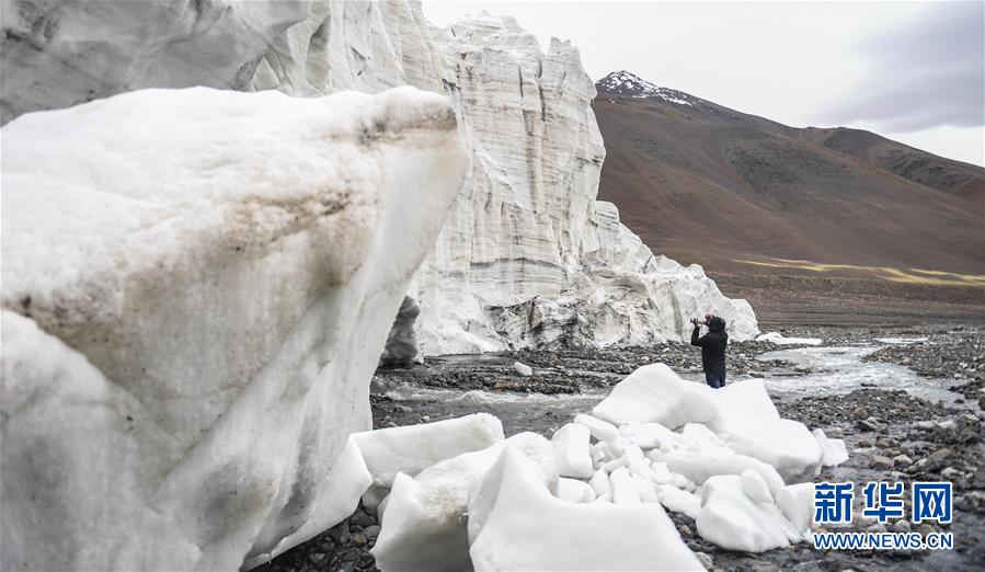 一名摄影爱好者在拍摄拉布拉冰川(8月4日摄)。 新华社记者 晋美多吉 摄