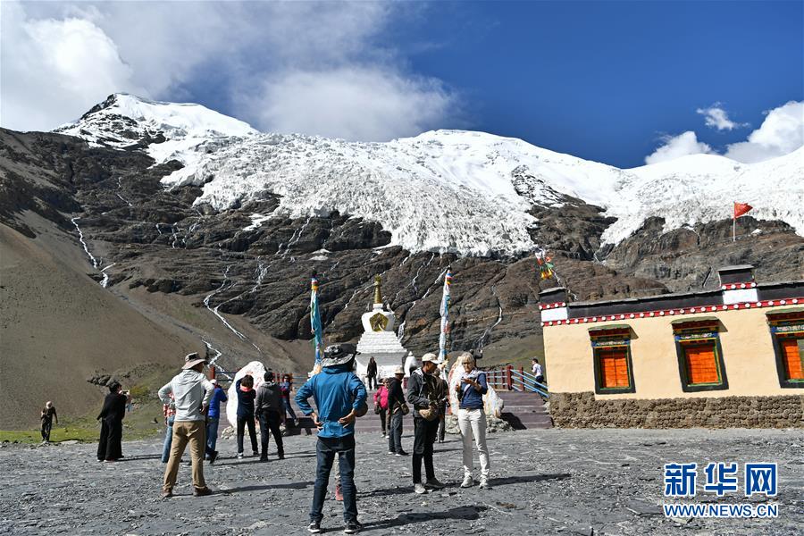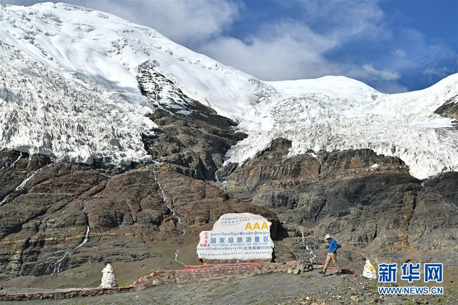 8月31日,游客在卡若拉冰川景区游览。 新华社记者 李鑫 摄