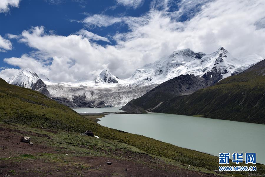 这是萨普雪山与湖泊风光(8月24日摄)。 萨普雪山位于西藏那曲市比如县羊秀乡,该雪山冰川壮丽,湖泊宁静,草场丰美,过去因谷大沟深、交通不便而鲜为人知。近年来当地发展旅游业,曾经养在“深闺”的萨普雪山逐渐成为吸引游客的新景点。 新华社记者 黄豁 摄