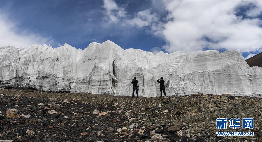 两名摄影爱好者在拍摄拉布拉冰川(8月4日摄)。 新华社记者 晋美多吉 摄