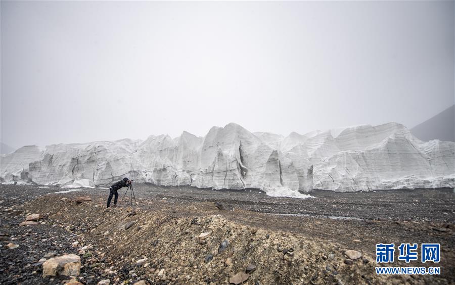 一名摄影爱好者在拍摄拉布拉冰川(8月4日摄)。 新华社记者 晋美多吉 摄