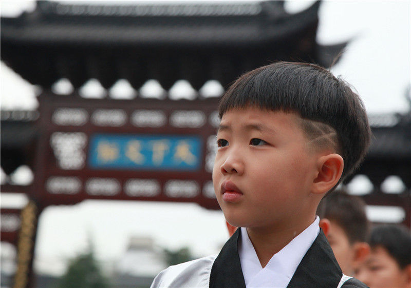 2019年9月1日,南京市夫子庙小学开笔礼,一年级的新生们有的打哈欠,有的做鬼脸,有的不耐烦,还有把书本定在头上的等等,萌态百出。来源:视觉中国 编辑/陈进