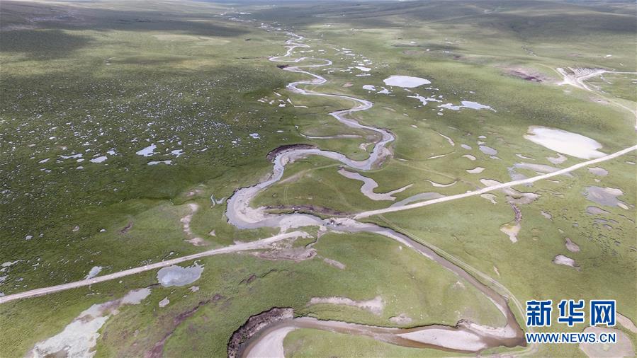 这是位于青海省玉树藏族自治州杂多县的长江南源当曲河道(8月6日无人机拍摄)。新华社记者吴刚摄