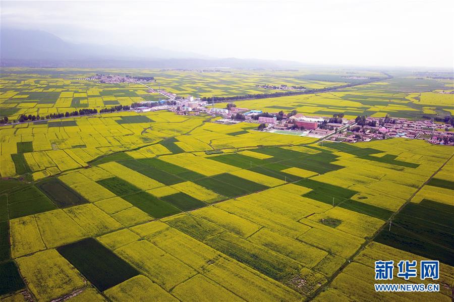这是在甘肃省张掖市民乐县扁都口生态休闲旅游区周边田园拍摄的油菜花海(7月17日无人机拍摄)。新华社记者 范培珅 摄