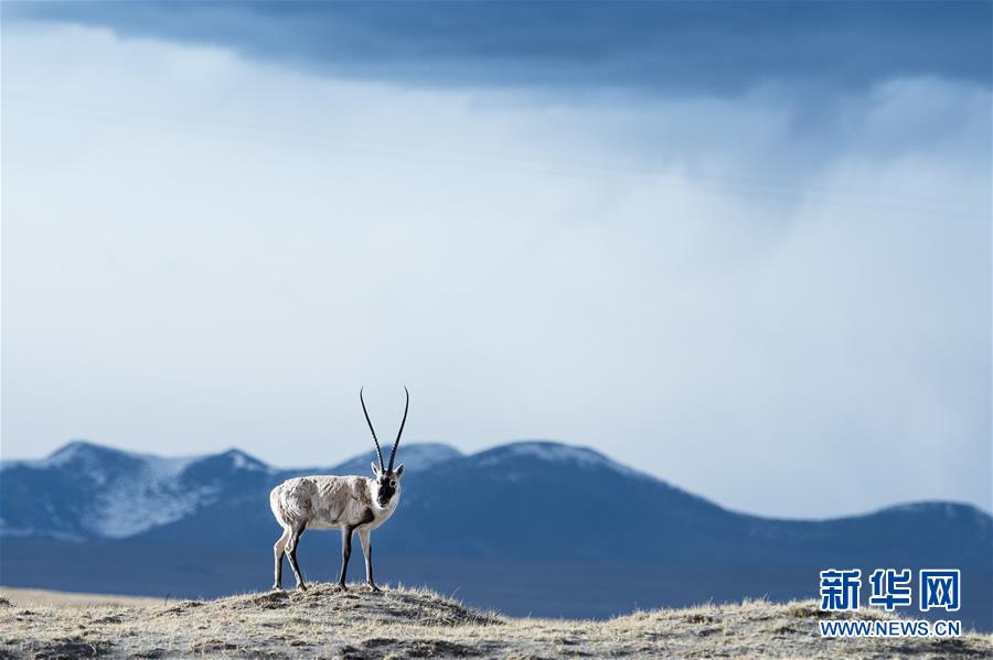 一只藏羚羊在青海可可西里地区觅食(2015年5月19日摄)。新华社记者吴刚摄