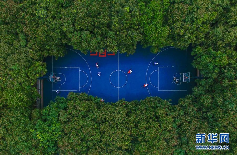 这是被绿荫环绕的广州第四十一中学运动场(2017年3月16日无人机拍摄)。 新华社记者 刘大伟 摄