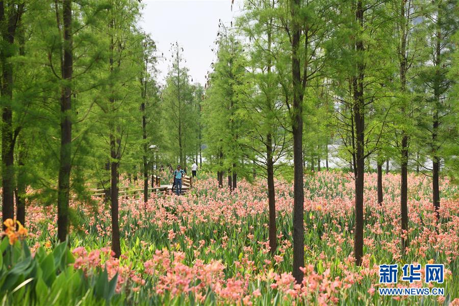 人们在广东佛山东平河滨河湿地景观带游览(4月9日摄)。 新华社记者 梁旭 摄