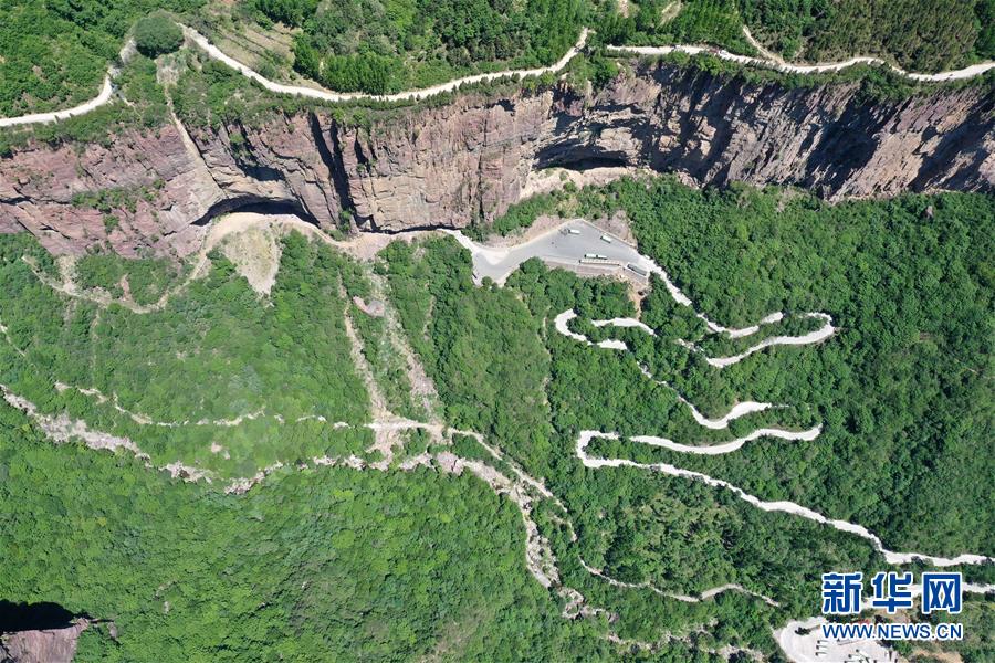 这是河南省辉县市郭亮村的绝壁峡谷(5月22日无人机拍摄)。 新华社记者 冯大鹏 摄