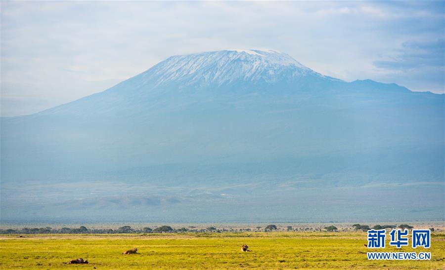 这是2019年5月2日在肯尼亚安博塞利国家公园拍摄的非洲最高峰乞力马扎罗山。