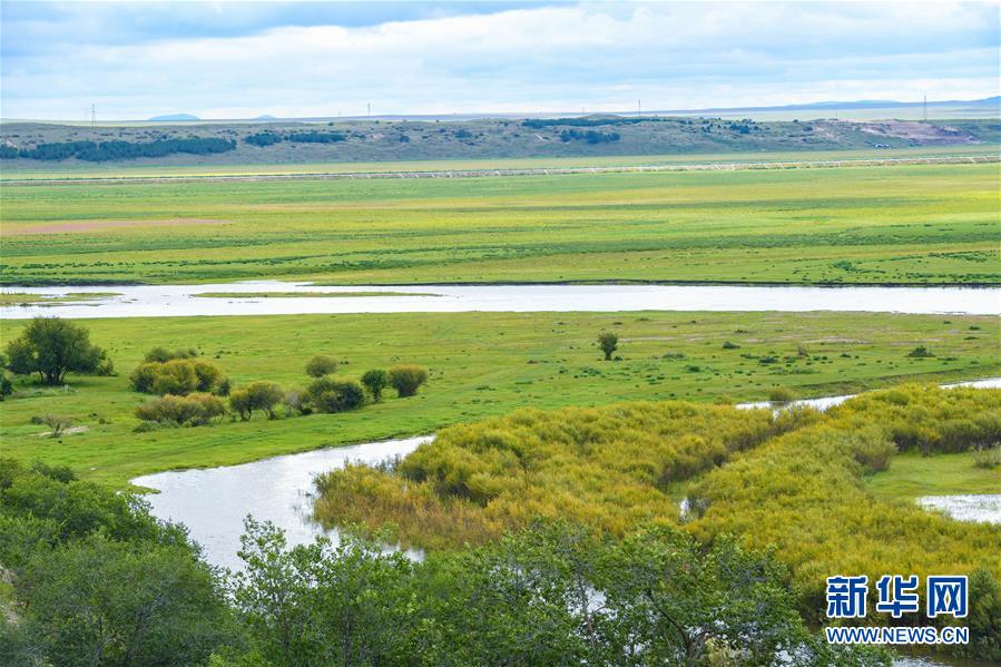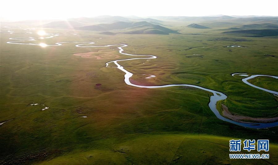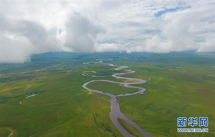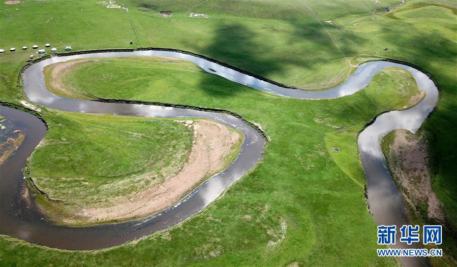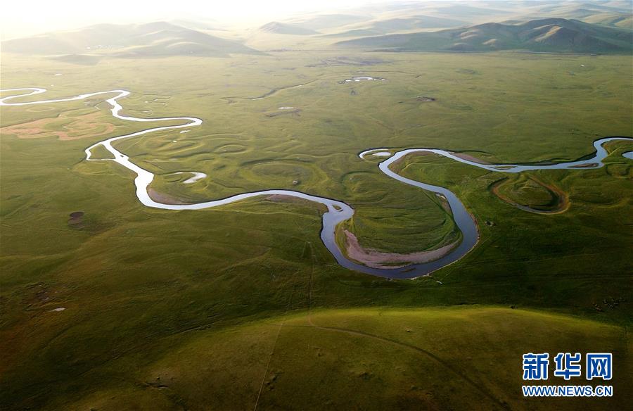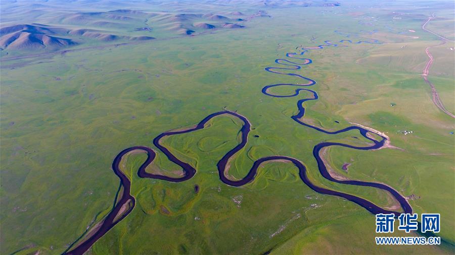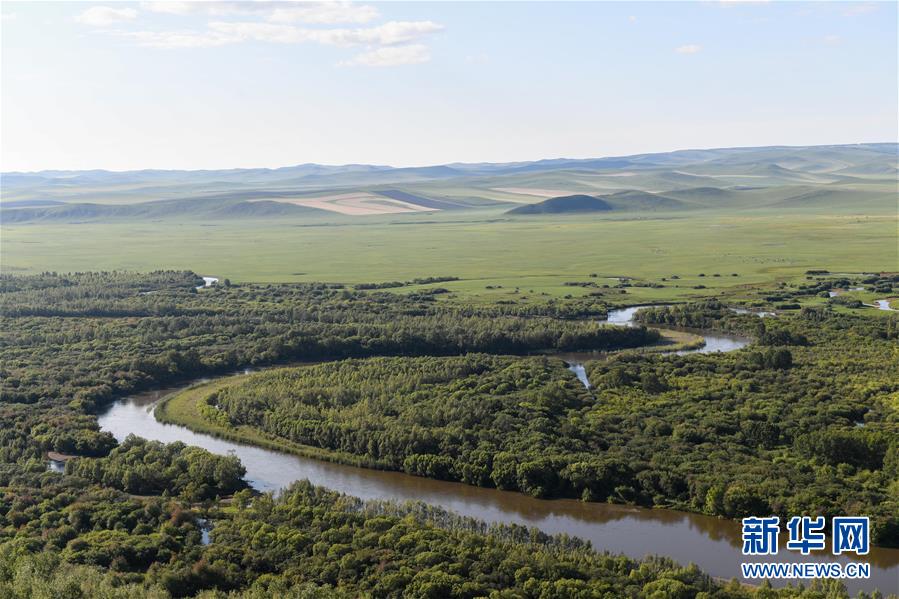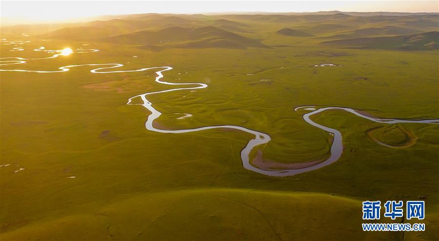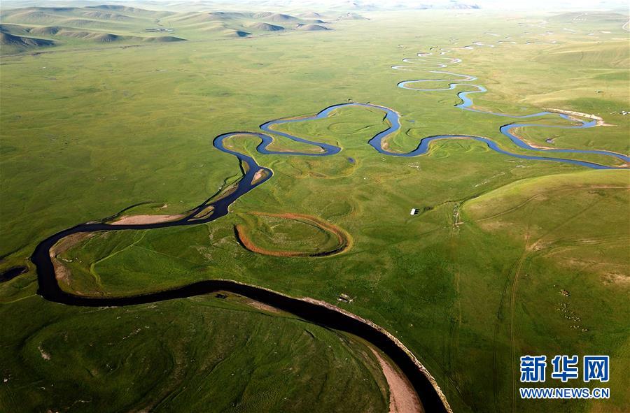 8月26日无人机拍摄的伊敏河。伊敏河流经呼伦贝尔草原。 新华社记者彭源摄