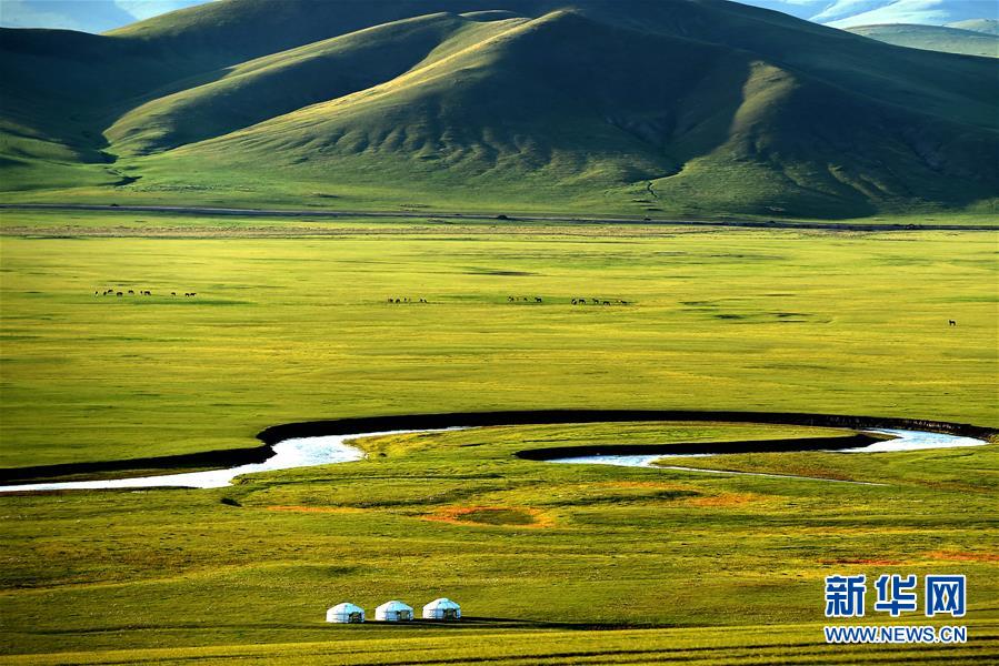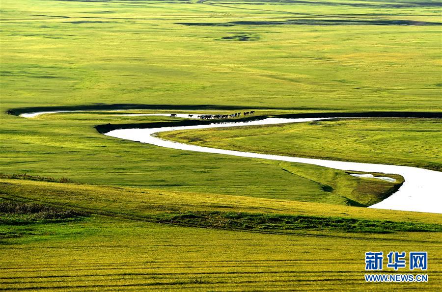 8月26日无人机拍摄的伊敏河(全景照片)。伊敏河流经呼伦贝尔草原。 新华社记者沈伯韩摄