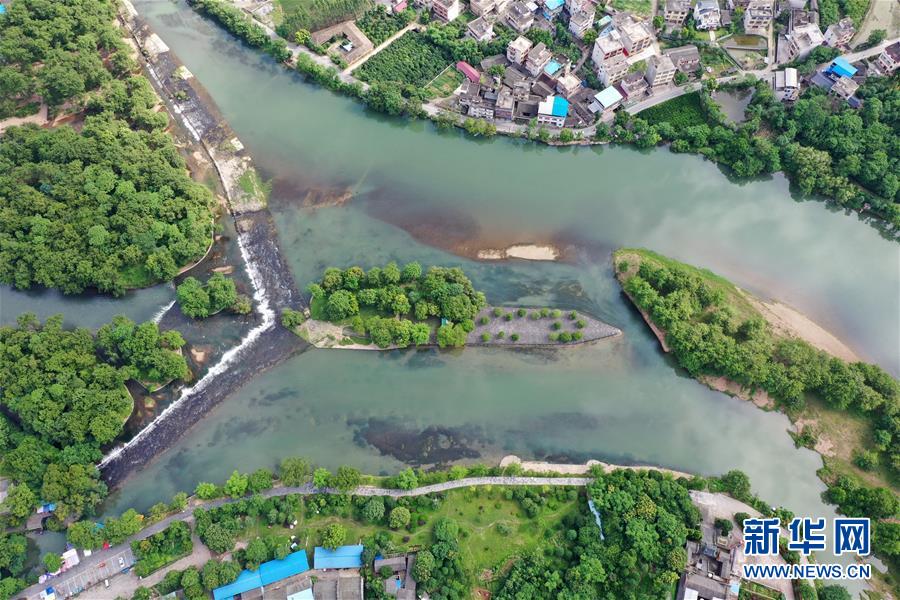 这是6月30日无人机拍摄的广西兴安县灵渠。 位于广西兴安县的灵渠是世界上保存最完整的古代水利工程之一,至今仍发挥着农田灌溉、排洪泄洪作用。2018年,灵渠入选世界灌溉工程遗产名录。 新华社记者 陆波岸 摄