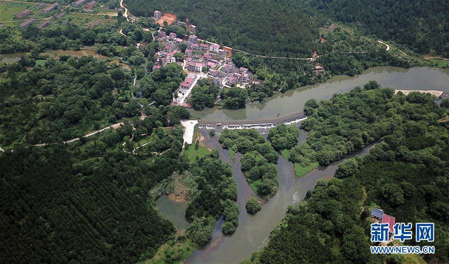 这是槎滩陂水利灌溉工程一景(5月29日无人机拍摄)。新华社记者彭昭之摄