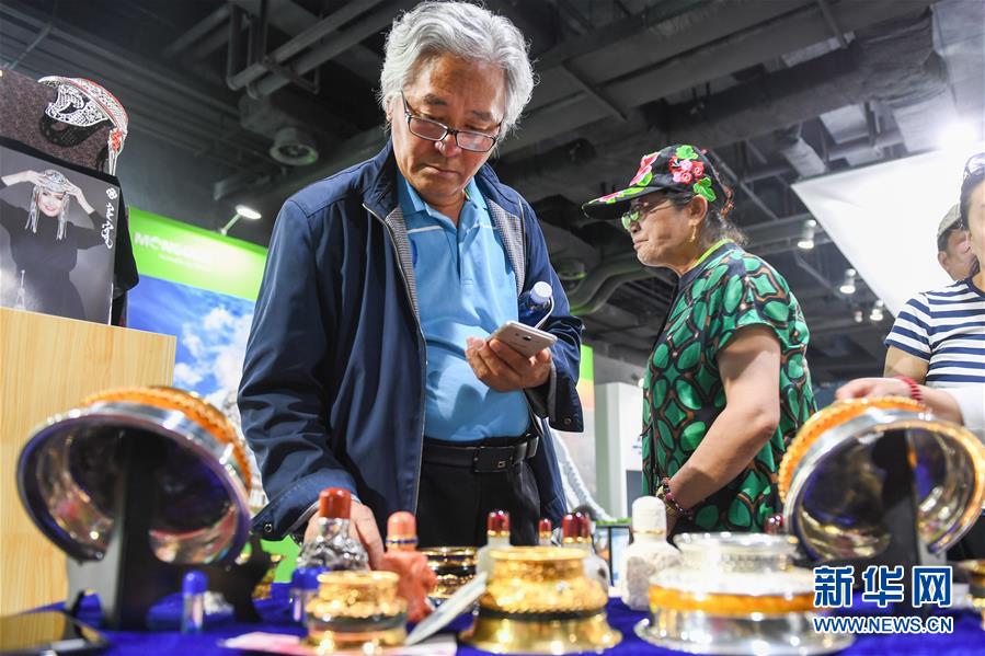 9月6日,参观者在中国-蒙古国博览会蒙古国展馆内挑选商品。 当日,第三届中国-蒙古国博览会在内蒙古自治区乌兰察布市开幕。本届博览会以“建设中蒙俄经济走廊,推进东北亚区域合作”为主题,聚焦于科技、经贸、农业、医药、文化等领域,设置会议论坛、投资贸易推介、展览展示和文化交流等4大板块活动。 新华社记者 刘磊 摄