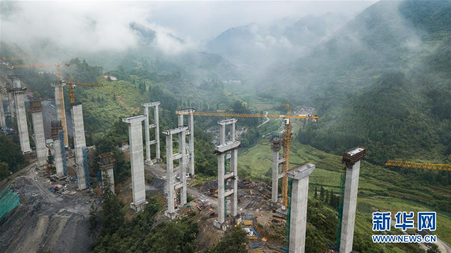 建设中的兰海高速重遵段(贵州段)扩容工程魏家寨特大桥(8月28日无人机拍摄)。该工程预计2022年底通车。新华社记者陶亮摄