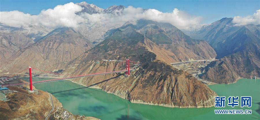这是四川雅康高速公路泸定大渡河兴康特大桥(2018年12月30日无人机拍摄)。2018年12月31日,雅康高速公路全线建成并试通车运营,结束了四川省甘孜藏族自治州州府所在地康定市不通高速公路的历史。 新华社记者江宏景摄
