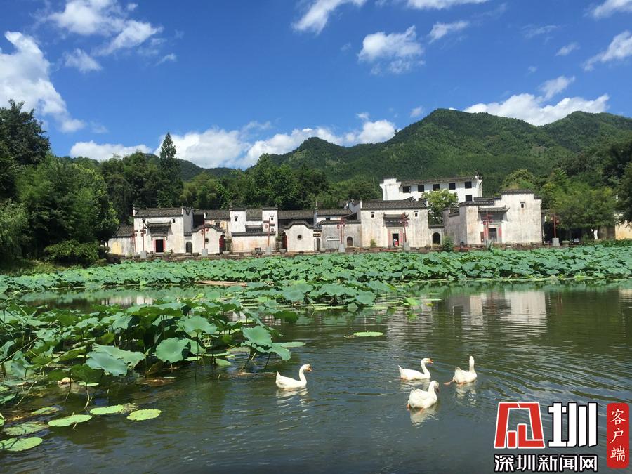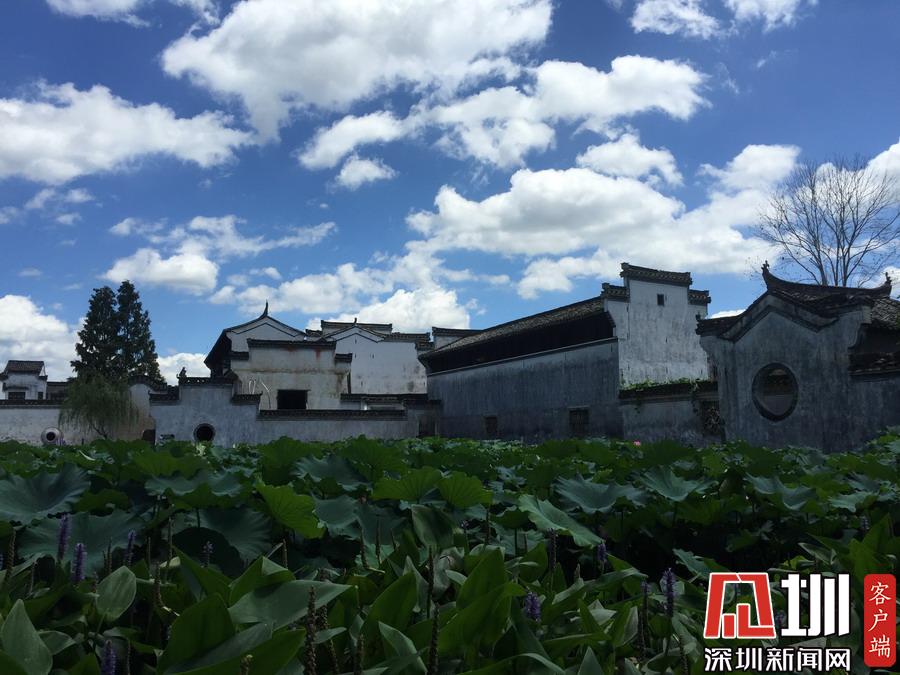 这是呈坎村内的荷塘和古民居(8月28日摄)。新华社记者刘军喜摄