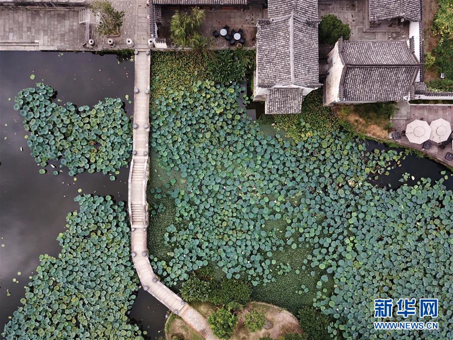 这是无人机拍摄的呈坎村内的荷塘(8月28日摄)。新华社记者刘军喜摄