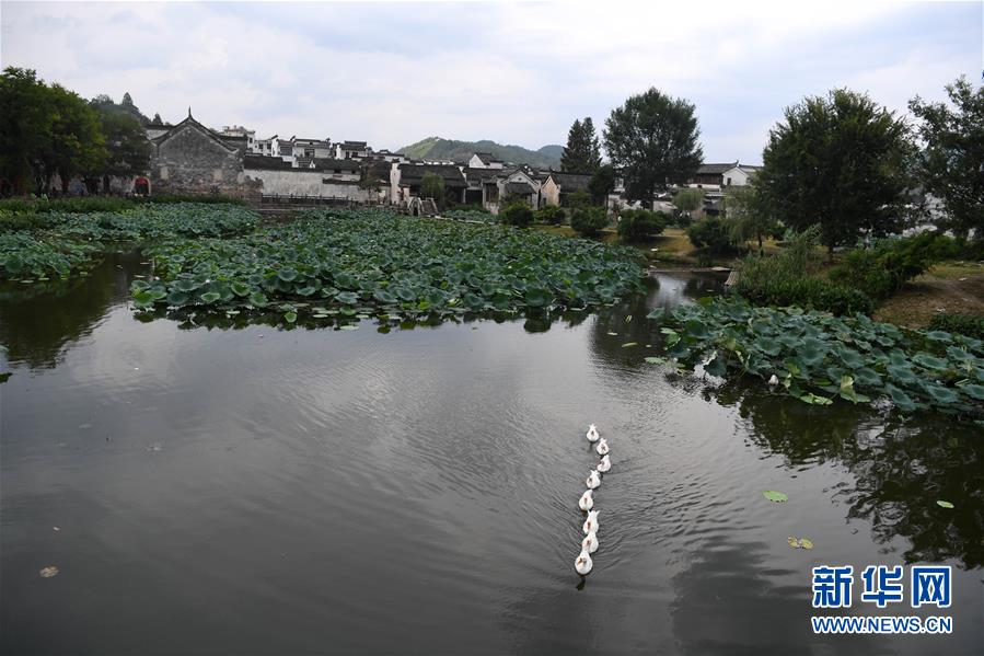 这是呈坎村内的荷塘(8月28日摄)。新华社记者刘军喜摄