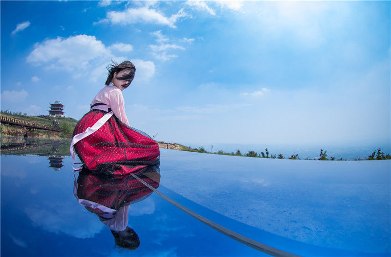 郑州版“天空之镜”亮相 女游客着汉服拍照尽显浪漫梦幻