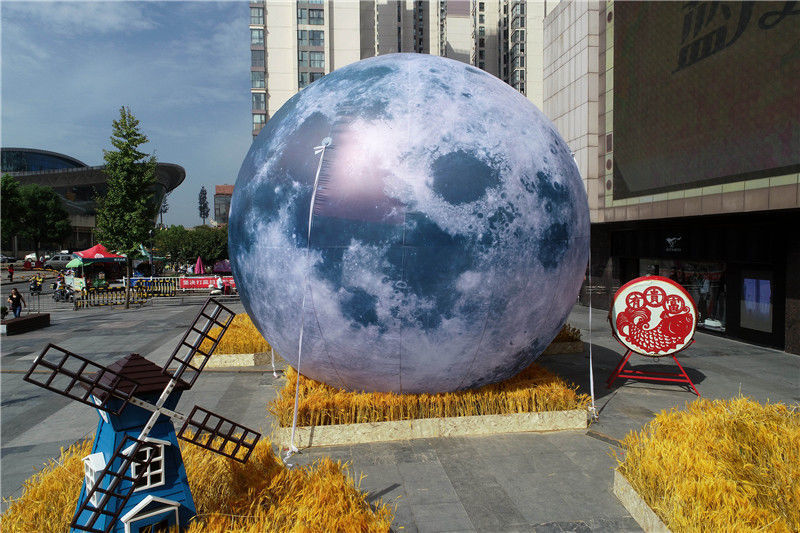 2018年9月22日,湖北省襄阳市,一只巨大的人造月亮出现在街头。李富华/视觉中国 编辑/陈进