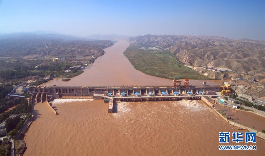黄河青铜峡水利枢纽工程(9月1日无人机拍摄)。新华社记者刘诗平摄