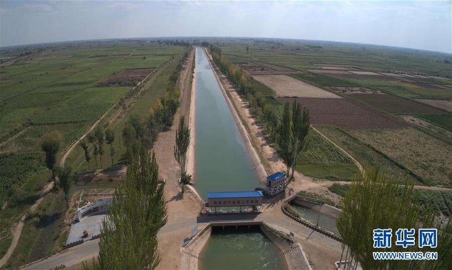 宁夏引黄古灌区唐正闸。2017年10月宁夏引黄古灌区入选世界灌溉工程遗产,这也是黄河干流上的首个世界灌溉工程遗产(9月1日无人机拍摄)。新华社记者刘诗平摄