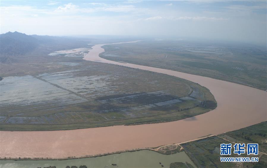 青铜峡市境内的黄河(9月3日无人机拍摄)。新华社记者刘诗平摄