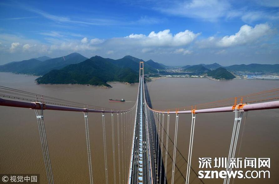 【跨度最大的悬索桥——西堠门大桥】西堠门大桥跨径1650米,是连接舟山本岛与宁波的舟山连岛工程五座跨海大桥中技术要求最高的特大型跨海桥梁。西堠门大桥工程完工后使舟山交通纳入长江三角洲的高速公路网络,有利于舟山港口资源的开发,有力推动了宁波——舟山港口一体化进程,在环杭州湾地区、长三角地区经济发展中发挥着重要作用。