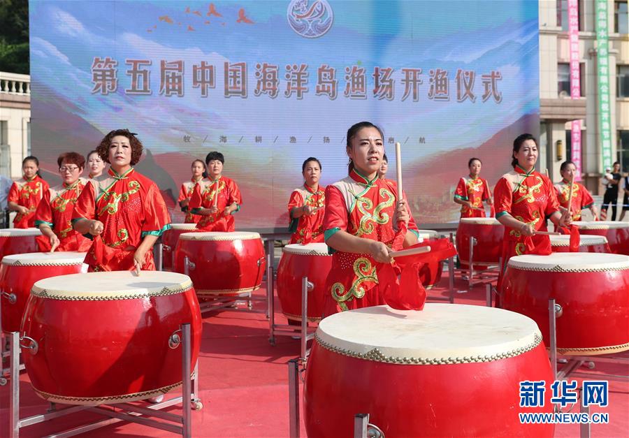 这是9月1日在第五届中国海洋岛渔场开渔节现场拍摄的击鼓表演。 新华社记者 龙雷 摄