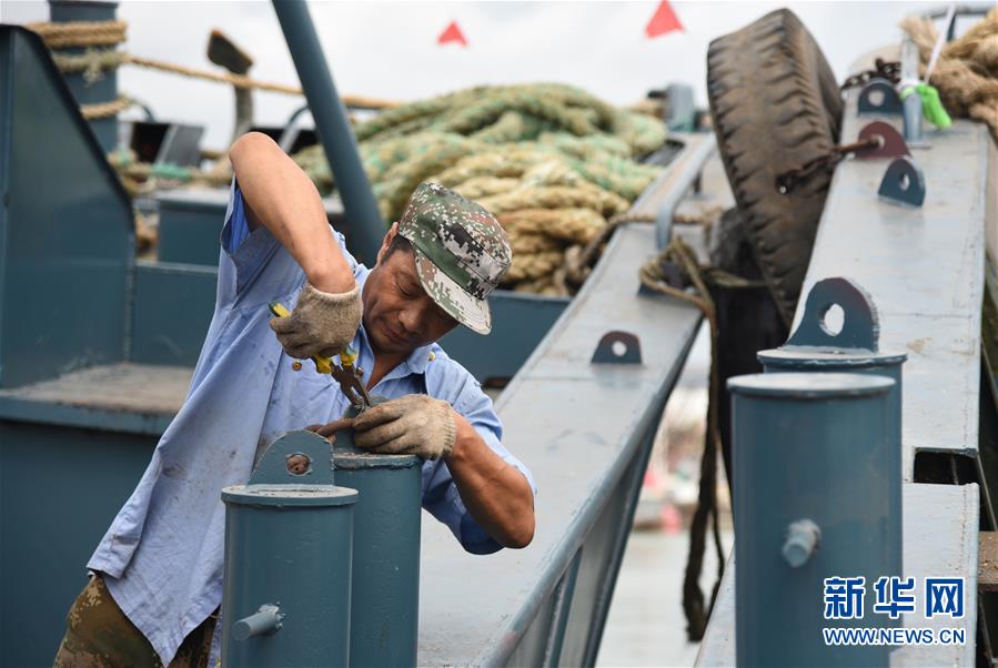 9月1日,渔民在出海前对渔船进行维护。 新华社记者 王凯 摄