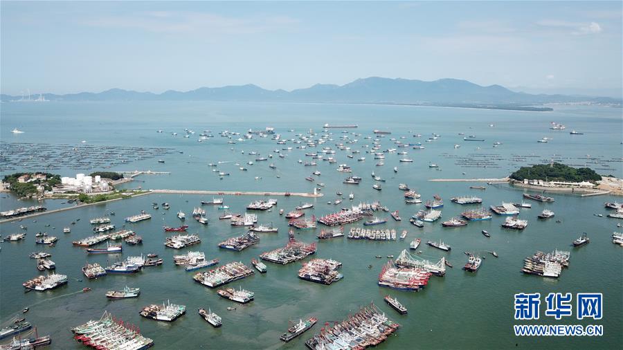 渔港里的渔船准备出海(8月16日无人机拍摄)。 新华社记者 周自扬 摄